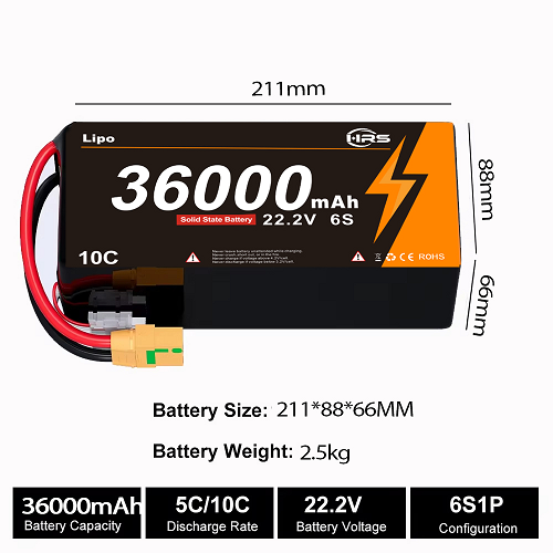 High density 350wh/kg 6S 22.2V 36000mAh